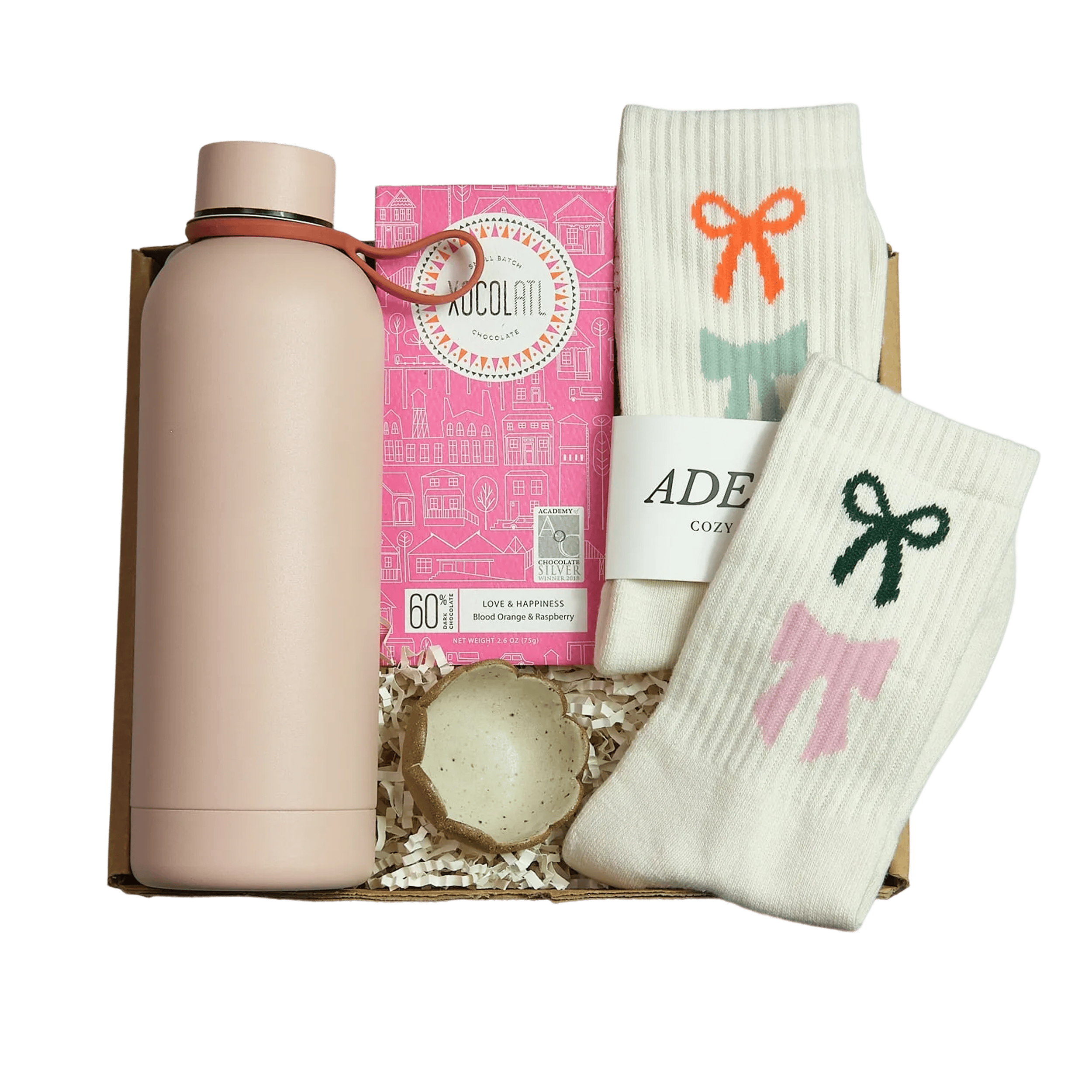 Gift boxes filled with handmade products made by shop-small, US artisans. Shop our curated gifts designed to surprise and delight, or build your own unique offering. Make it truly special with earth-friendly gift wrap, hand-painted in fun prints and designs.